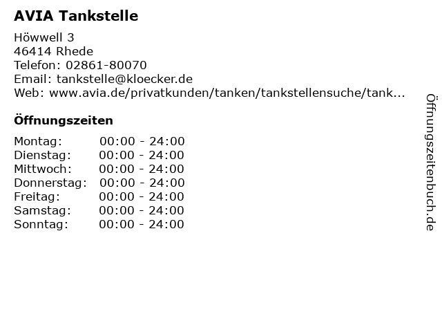 | Öffnungszeiten AVIA Tankstelle in Rhede anzeigen | |