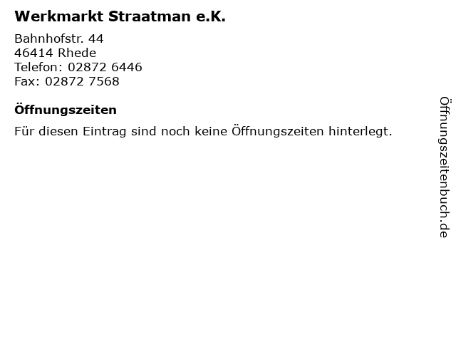 | Öffnungszeiten Werkmarkt Straatman e.K. in Rhede anzeigen | |