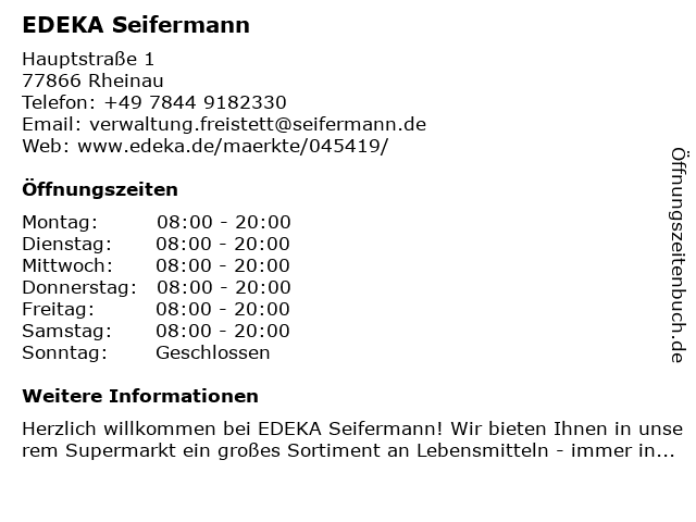 | Öffnungszeiten EDEKA Seifermann in Rheinau anzeigen | |