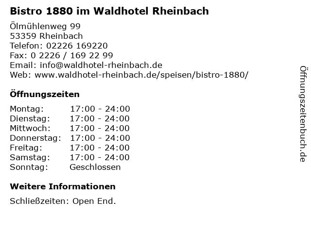 Branchen & Suchbegriffe zu Bistro 1880 im Waldhotel Rheinbach:1880, bar, bistro, digestifs, essen, trinken, waldhotel |