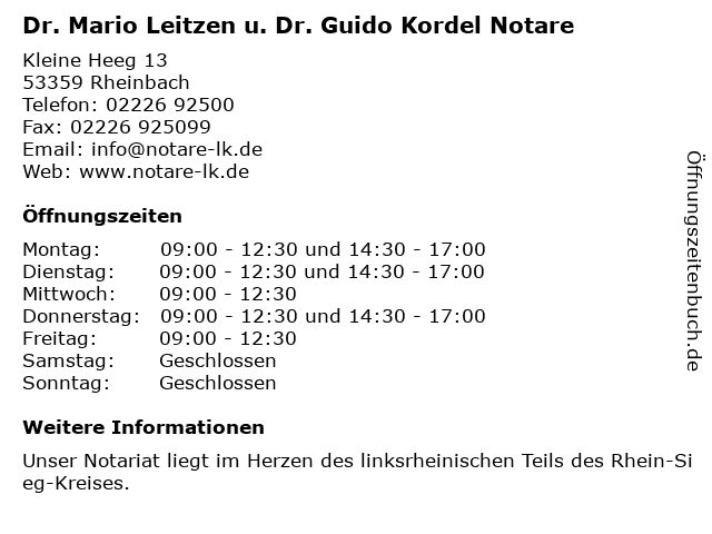 Branchen & Suchbegriffe zu Dr. Mario Leitzen u. Dr. Guido Kordel Notare:dr., guido, kordel, leitzen, mario, notare, u. |