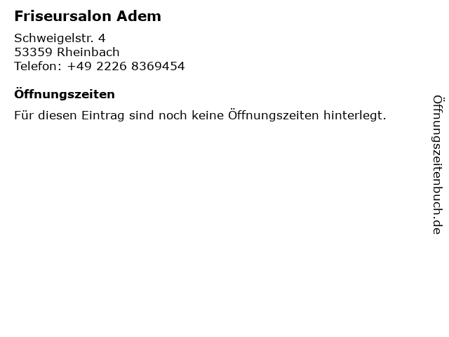 | Öffnungszeiten Friseursalon Adem in Rheinbach anzeigen | |
