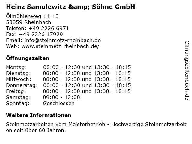 4 Blumenbotschaft Vier Jahreszeiten, Nadine Samulewitz (Entfernung: 0,08 km) Neugartenstr. 28, 53359 Rheinbach 5 Schweiß & Söhne, Karl-Heinz GmbH&Co, Sanitär & Heizungsbau KG (Entfernung: 5,02 km) Bahnhofstr. 15, 53340 Meckenheim 6 Fuchs Friedrich Wwe. & Söhne GmbH & Co. KG Bäckerei (Entfernung: 12,39 km) Kommerner Str. 33, 53879 Euskirchen |