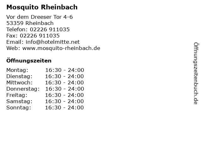 | Öffnungszeiten Mosquito Rheinbach in Rheinbach anzeigen | |