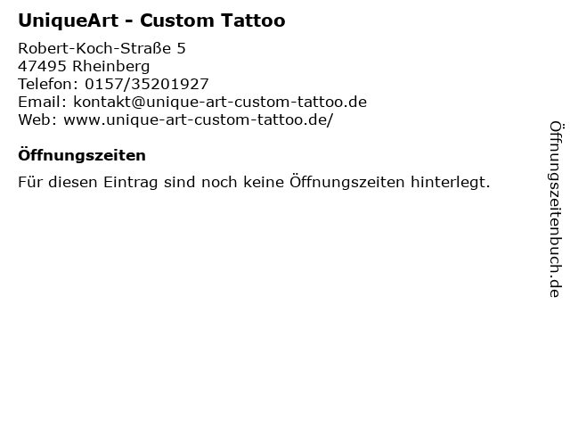 | Öffnungszeiten UniqueArt - Custom Tattoo in Rheinberg anzeigen | |
