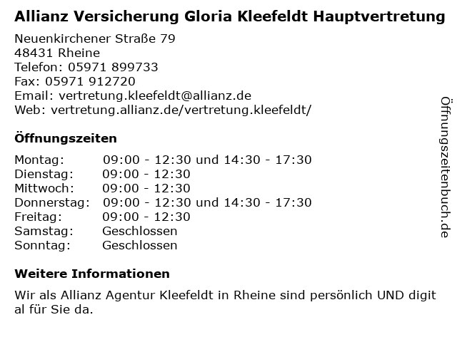 1 Allianz Versicherung Florian Lambers Hauptvertretung (Entfernung: 1,21 km) Elter Straße 2, 48429 Rheine 2 Allianz Versicherung Dirk Verlemann Hauptvertretung (Entfernung: 15,89 km) Jordanstraße 7, 49479 Ibbenbüren 3 Allianz Versicherung Ramaker und Löpenhaus Inh. K.Löpenhaus-Wulfert Hauptvertretung (Entfernung: 17,27 km) Alte Lindenstraße 21, 48565 Steinfurt 4 Allianz Versicherung Guido Hübers Hauptvertretung (Entfernung: 18,28 km) Bahnhofstraße 49, 48607 Ochtrup 6 |