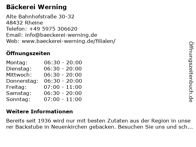 | Öffnungszeiten Bäckerei Werning in Rheine anzeigen | |
