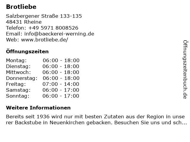 | Öffnungszeiten Brotliebe in Rheine anzeigen | |