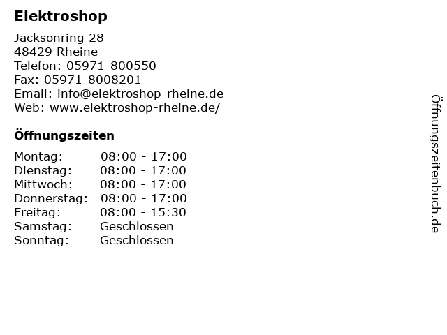 | Öffnungszeiten Elektroshop in Rheine anzeigen | |