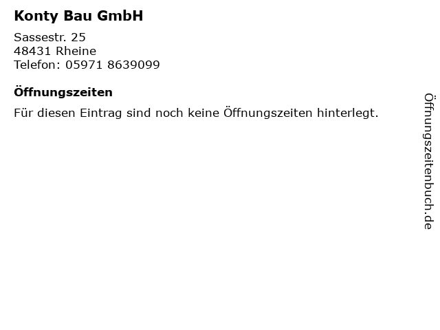 | Öffnungszeiten Konty Bau GmbH in Rheine anzeigen | |