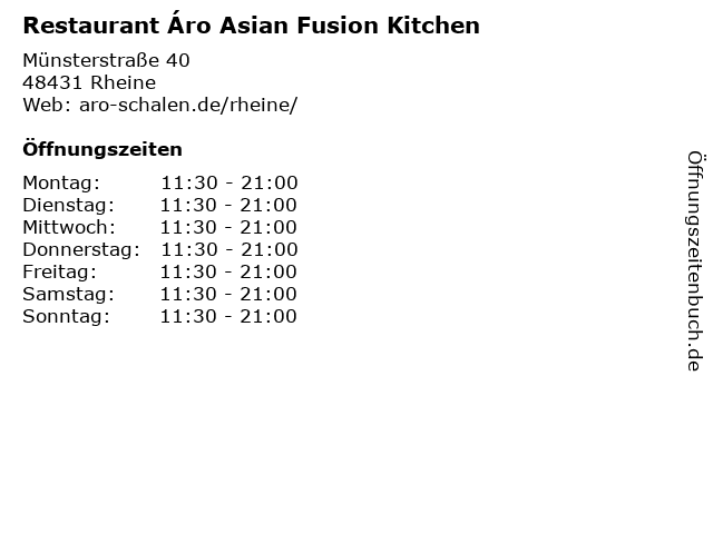 | Öffnungszeiten Restaurant Áro Asian Fusion Kitchen in Rheine anzeigen | |