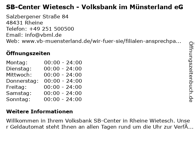 Branchen & Suchbegriffe zu SB-Center Wietesch - Volksbank im Münsterland eG:bank, bargeld, center, eg, geldautomat, münsterland, sb, volksbank, wietesch |