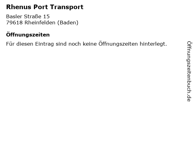 | Öffnungszeiten Rhenus Port Transport in Rheinfelden (Baden) anzeigen | |