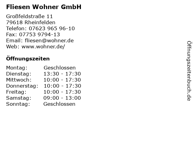 | Öffnungszeiten Fliesen Wohner GmbH in Rheinfelden anzeigen | |