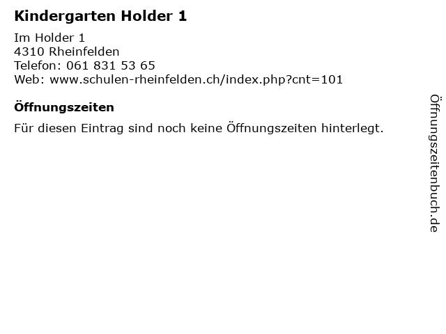 | Öffnungszeiten Kindergarten Holder 1 in Rheinfelden anzeigen | |