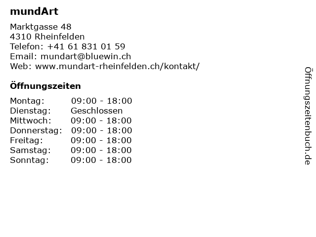 | Öffnungszeiten mundArt in Rheinfelden anzeigen | |