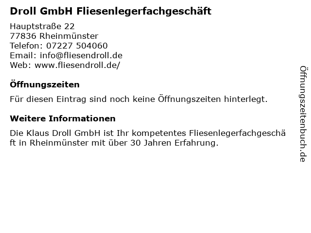 | Droll GmbH Fliesenlegerfachgeschäft anrufen | |