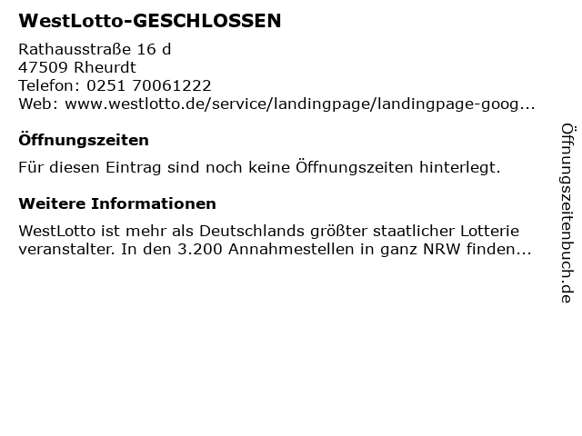 Öffnungszeiten WestLotto-GESCHLOSSEN in Rheurdt anzeigen