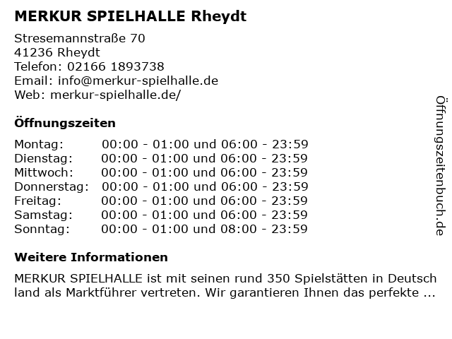 | Öffnungszeiten MERKUR SPIELHALLE Rheydt in Rheydt anzeigen | |