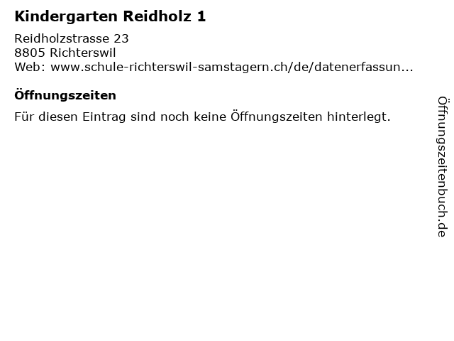 | Öffnungszeiten Kindergarten Reidholz 1 in Richterswil anzeigen | |