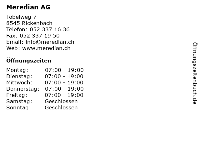 | Öffnungszeiten Meredian AG in Rickenbach anzeigen | |