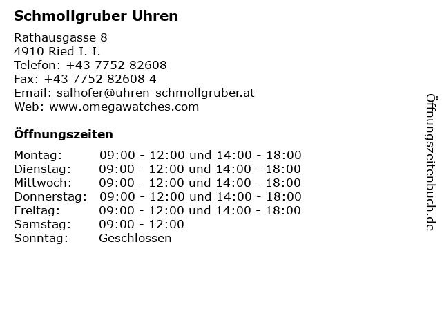 Öffnungszeiten Schmollgruber Uhren in Ried I. I. anzeigen | |