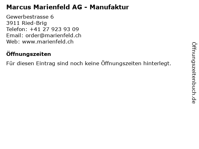 | Marcus Marienfeld AG - Manufaktur anrufen | |