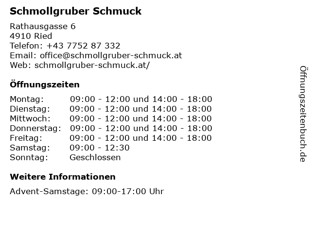 Öffnungszeiten Schmollgruber Schmuck in Ried anzeigen | |