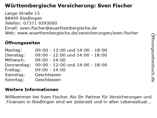 Branchen & Suchbegriffe zu Württembergische Versicherung: Sven Fischer:fischer, sven, versicherung, württembergische |