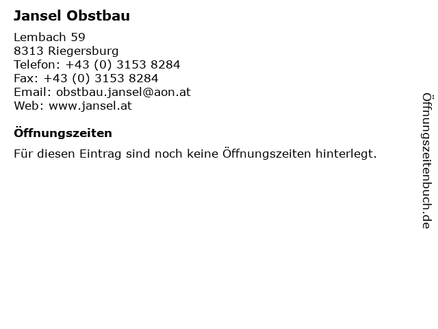 | Öffnungszeiten Jansel Obstbau in Riegersburg anzeigen | |