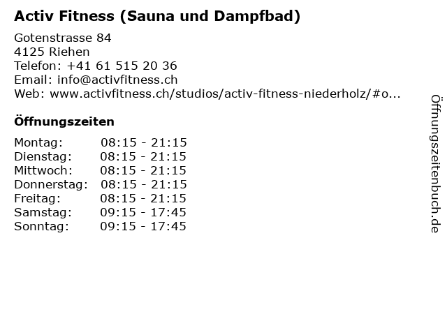 Branchen & Suchbegriffe zu Activ Fitness (Sauna und Dampfbad):activ, dampfbad, fitness, fitnesstudio, gym, sauna, sportstudio, training |