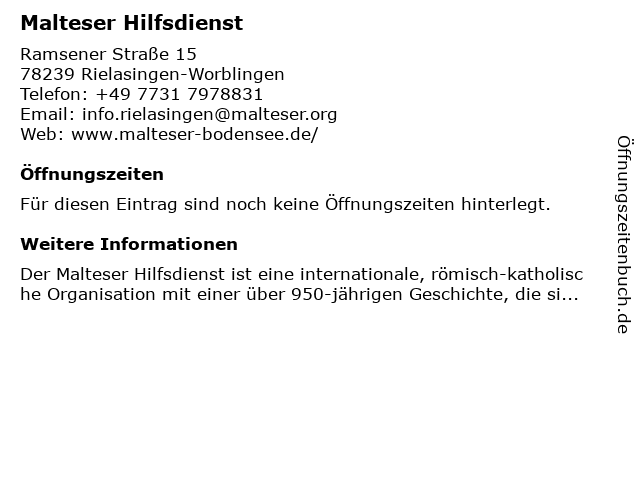 4 Deutscher Hilfsdienst Ortsverein Singen e.V. (Entfernung: 3,61 km) Schaffhauserstraße 44, 78224 Singen 5 Malteser - Hilfsdienst e. V. Dienststelle Südbaden-Hohenzollern (Entfernung: 4,35 km) Uhlandstr. 36, 78224 Singen 6 |