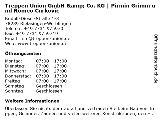 Branchen & Suchbegriffe zu Treppen Union GmbH & Co. KG | Pirmin Grimm und Romeo Curkovic:balkone, balkongeländer, carport, curkovic, gartenmöbel, geländer, grimm, metallbau, pirmin, romeo, schlossereien, tore, treppen, türen, union, vordach, vordächer, zäune |