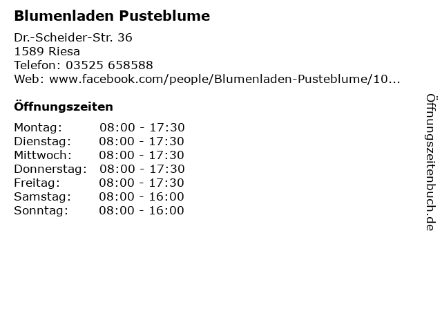 | Öffnungszeiten Blumenladen Pusteblume in Riesa anzeigen | |