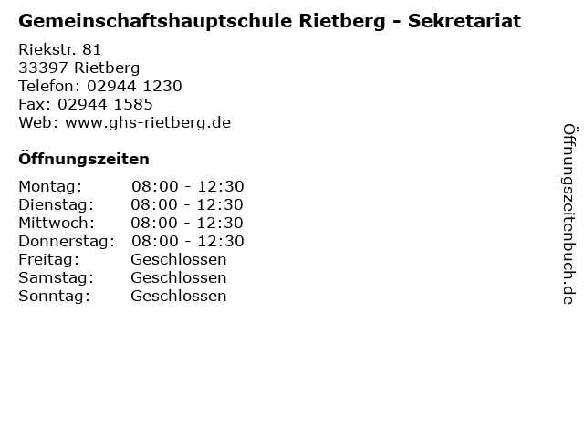 Branchen & Suchbegriffe zu Gemeinschaftshauptschule Rietberg - Sekretariat:gemeinschaftshauptschule, hauptschulen, sekretariat, stadt |
