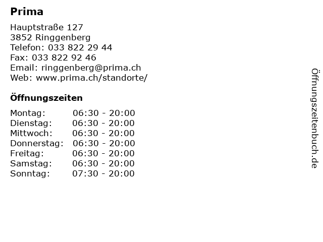 | Öffnungszeiten Prima in Ringgenberg anzeigen | |