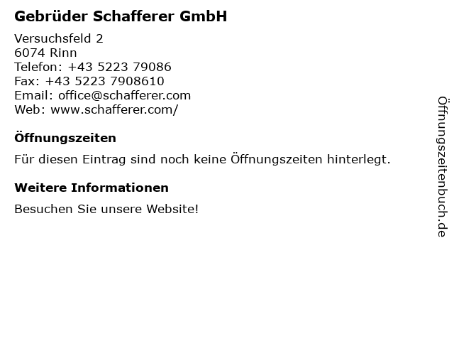 | Öffnungszeiten Gebrüder Schafferer GmbH in Rinn anzeigen | |