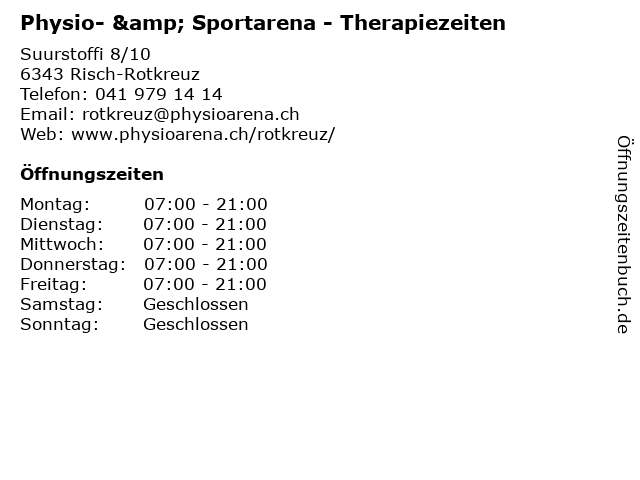 Öffnungszeiten Physio- & Sportarena - Therapiezeiten in Risch-Rotkreuz anzeigen