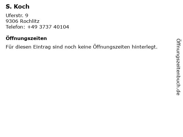 | Öffnungszeiten S. Koch in Rochlitz anzeigen | |