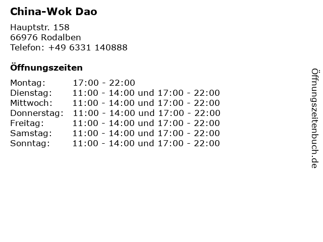 | Adresse China-Wok Dao in Rodalben anzeigen |