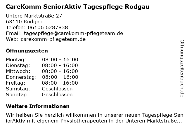Branchen & Suchbegriffe zu CareKomm SeniorAktiv Tagespflege Rodgau:carekomm, senioraktiv, tagespflege |
