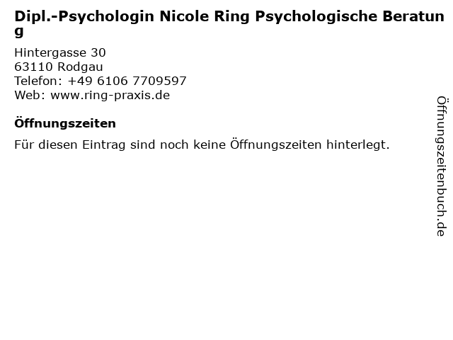 | Dipl.-Psychologin Nicole Ring Psychologische Beratung anrufen | |