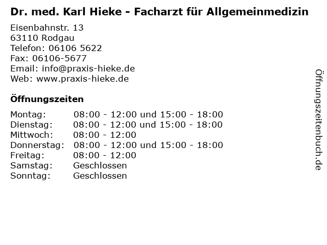 Branchen & Suchbegriffe zu Dr. med. Karl Hieke - Facharzt für Allgemeinmedizin:allgemeinmedizin, arzt, dr., facharzt, hieke, karl, med., mediziner, praxis |
