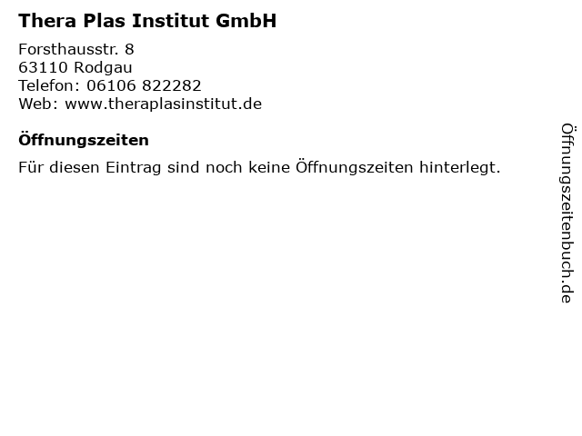 | Telefonnummer Thera Plas Institut GmbH in Rodgau (06106 822282) anrufen | |