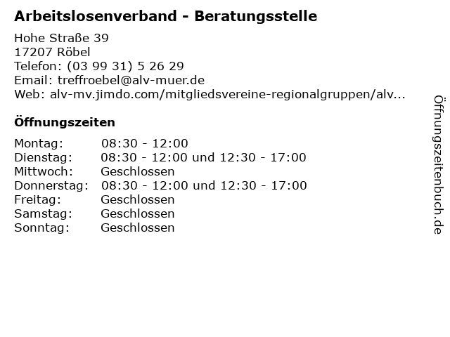 Branchen & Suchbegriffe zu Arbeitslosenverband - Beratungsstelle:arbeitslosenverband, beratung, beratungsstelle, bürgerhilfe, hilfe, röbel |