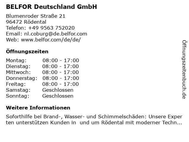 | Öffnungszeiten BELFOR Deutschland GmbH in Rödental anzeigen | |