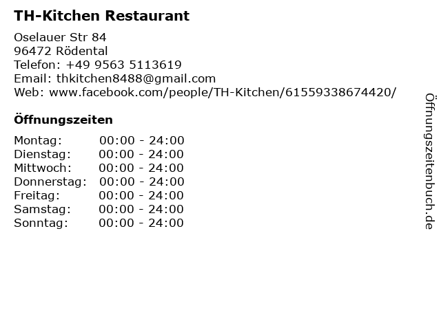 | Öffnungszeiten TH-Kitchen Restaurant in Rödental anzeigen | |