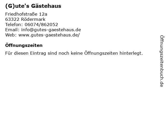 | Öffnungszeiten (G)ute's Gästehaus in Rödermark anzeigen | |