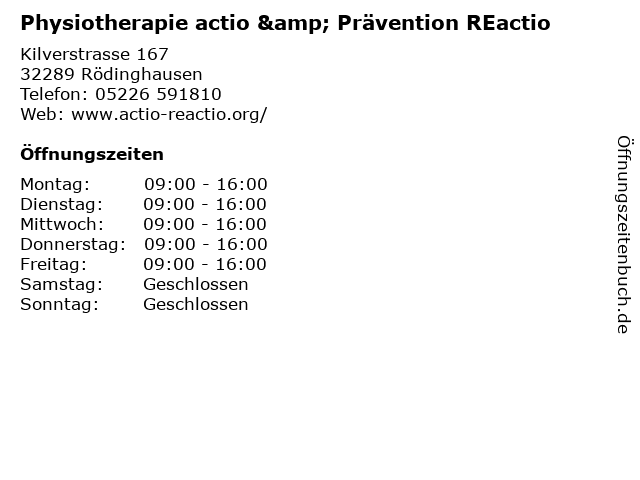 Branchen & Suchbegriffe zu Physiotherapie actio & Prävention REactio:actio, physiotherapie, prävention, reactio |