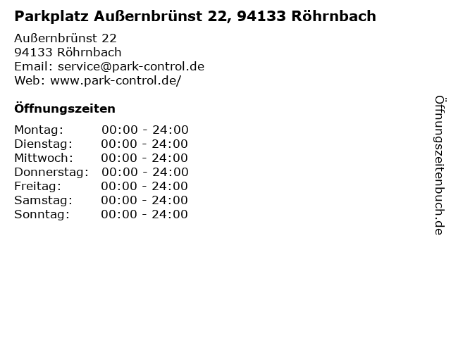 | Öffnungszeiten Parkplatz Außernbrünst 22, 94133 Röhrnbach in Röhrnbach anzeigen | |